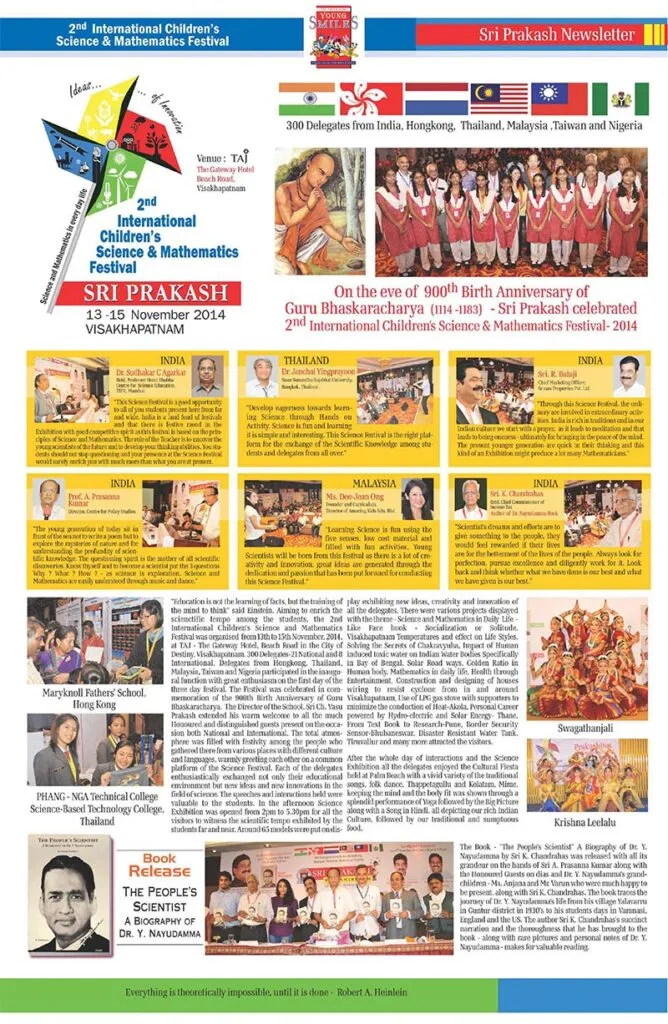 Brief History of Sri Prakash’s International Children’s Science & Mathematics Festival